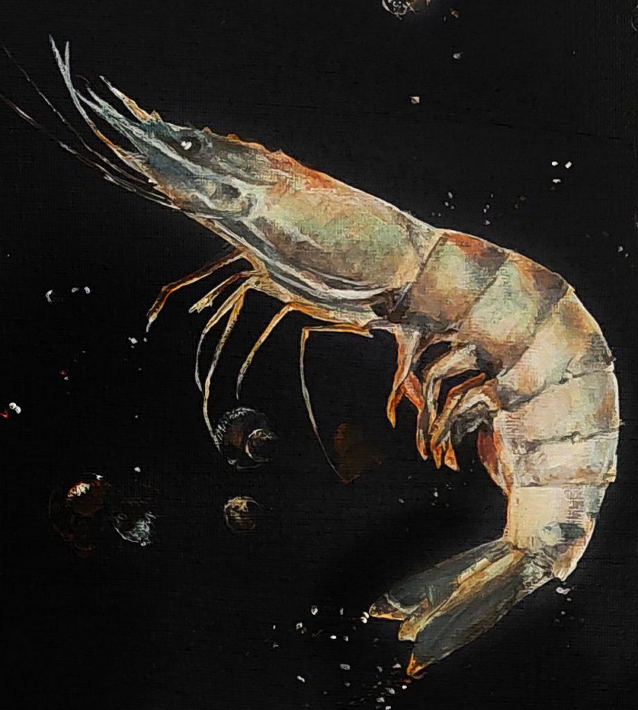 Shrimp #2 Acryl, 2 Tafeln mit je 30×40 cm, gesamt 60×40 cm, gerahmt (Schattenfuge) Shrimp #2: Detail 13. Januar 2026 in Kunst ← Vorheriger Beitrag